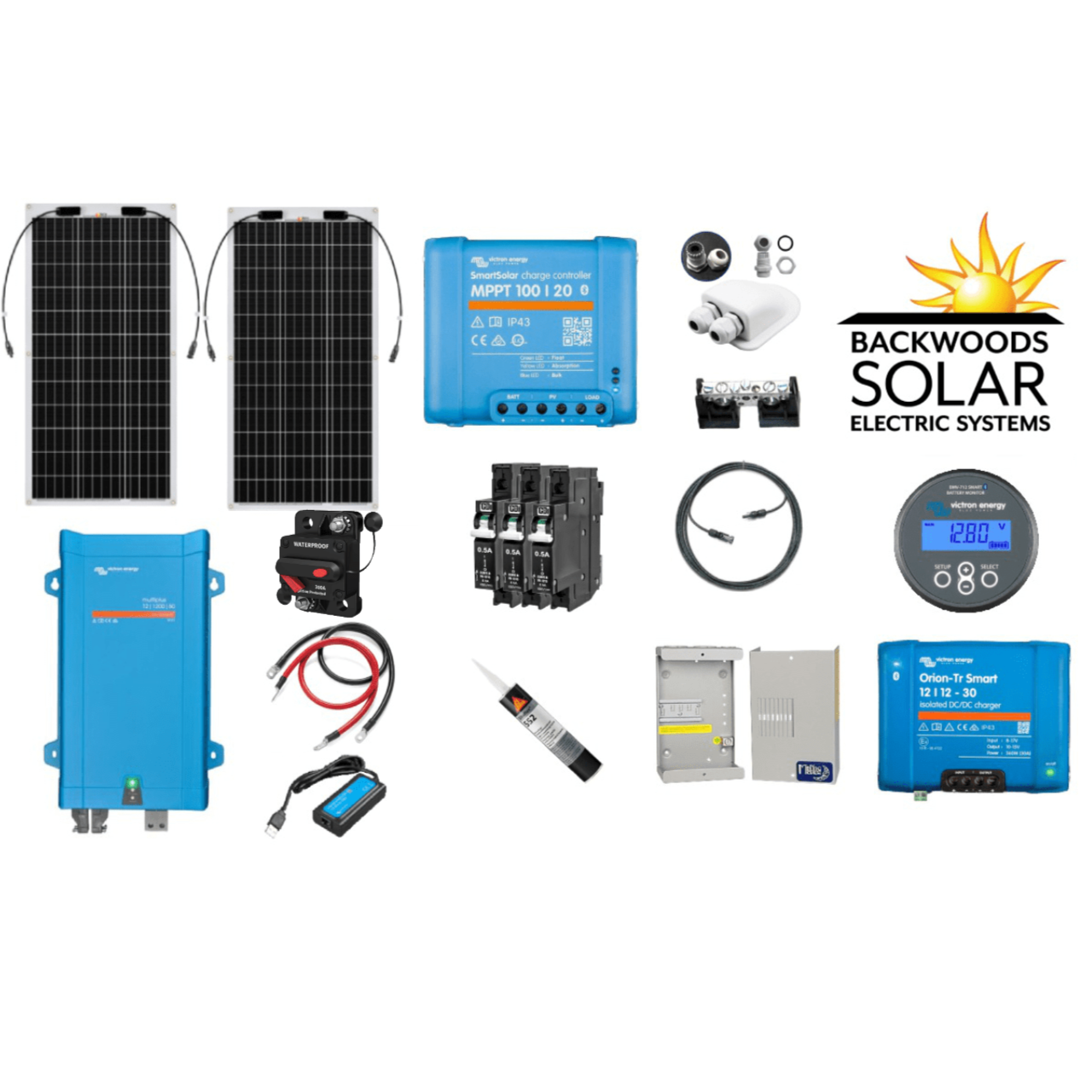 Due to high customer demand, Backwoods Solar is happy to announce the arrival of our new RV Solar kits. We created these kits using high quality, easy to install components for use in mobile or marine applications. Nearly all necessary items are included for a complete system for your RV or boat, just add your own battery bank.