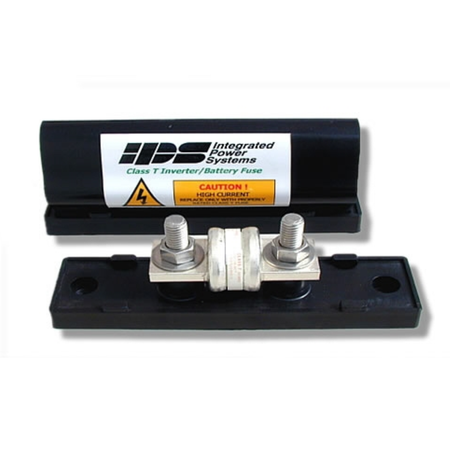INLINE 400 Amp Class T Fuse mounted on fuse block with clear plastic cover.
