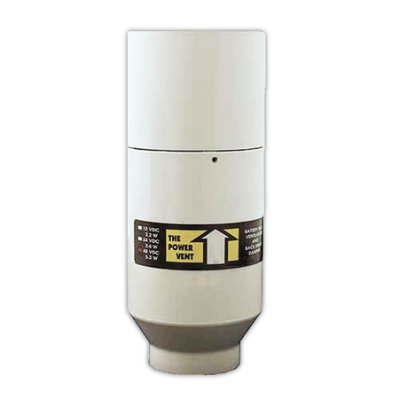Ready made 48 volt brushless fan with back draft damper for easy (vertical) installation in your PVC battery vent pipe (2" inlet and 3" outlet). Use a charge controller with an auxillery connection available (Outback, Midnite, XW) and our O-MINIRELAY to turn the fan on when the battery is at or above gassing voltage.