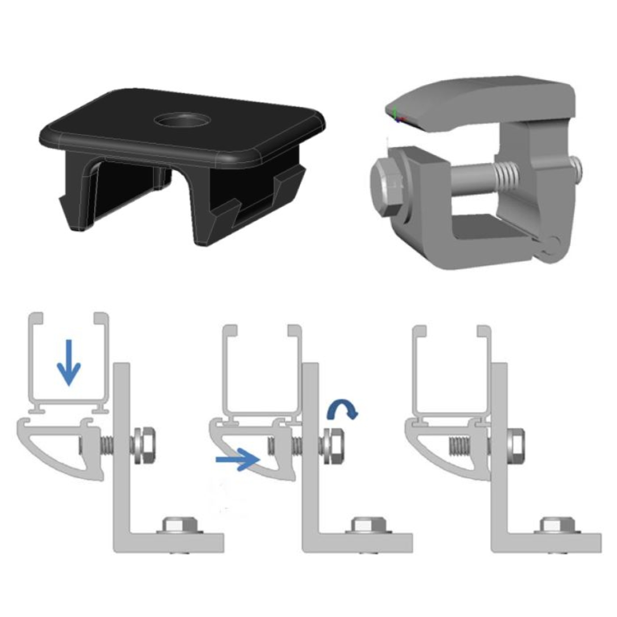 - Module clamps included in kits fit frame thickness of 30mm to 40mm. Deeper module frames can be used by adding 50/50+ mounting clamps