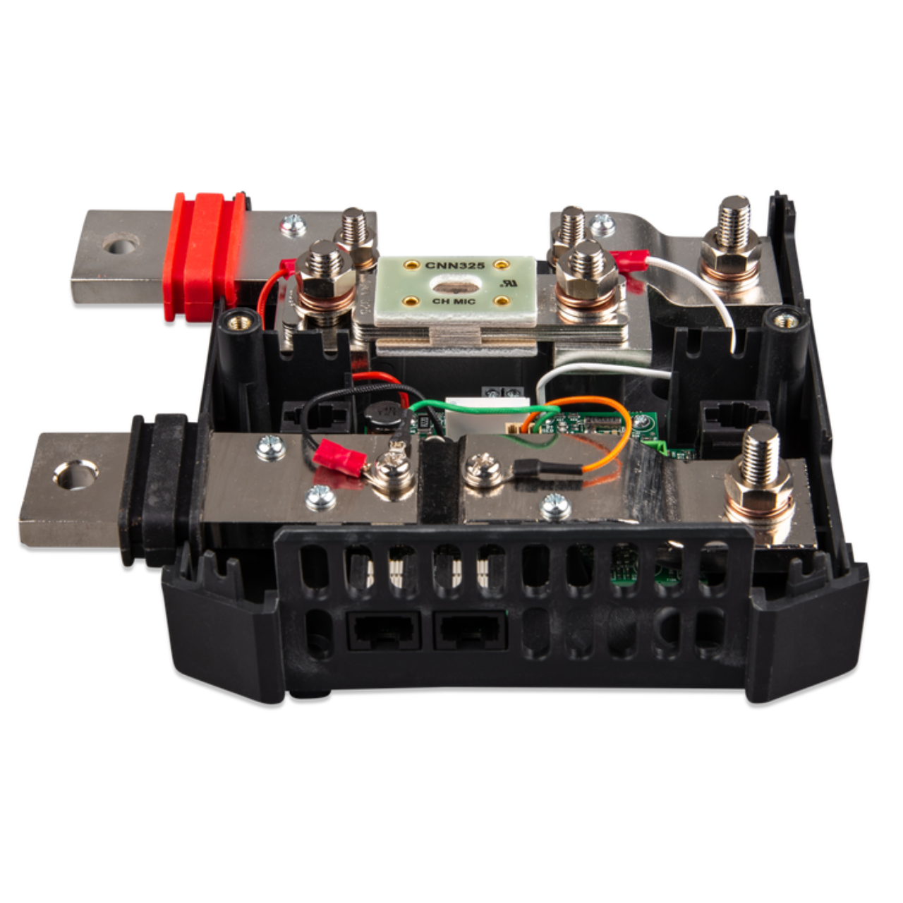 The Lynx Shunt VE.Can is an intelligent 1000A shunt with location for a fuse (not included), the built-in battery monitor accurately monitors the state of charge of your battery. Use a GX device (e.g. Cerbo GX) for reading out the information. Part of the modular Lynx distribution system.