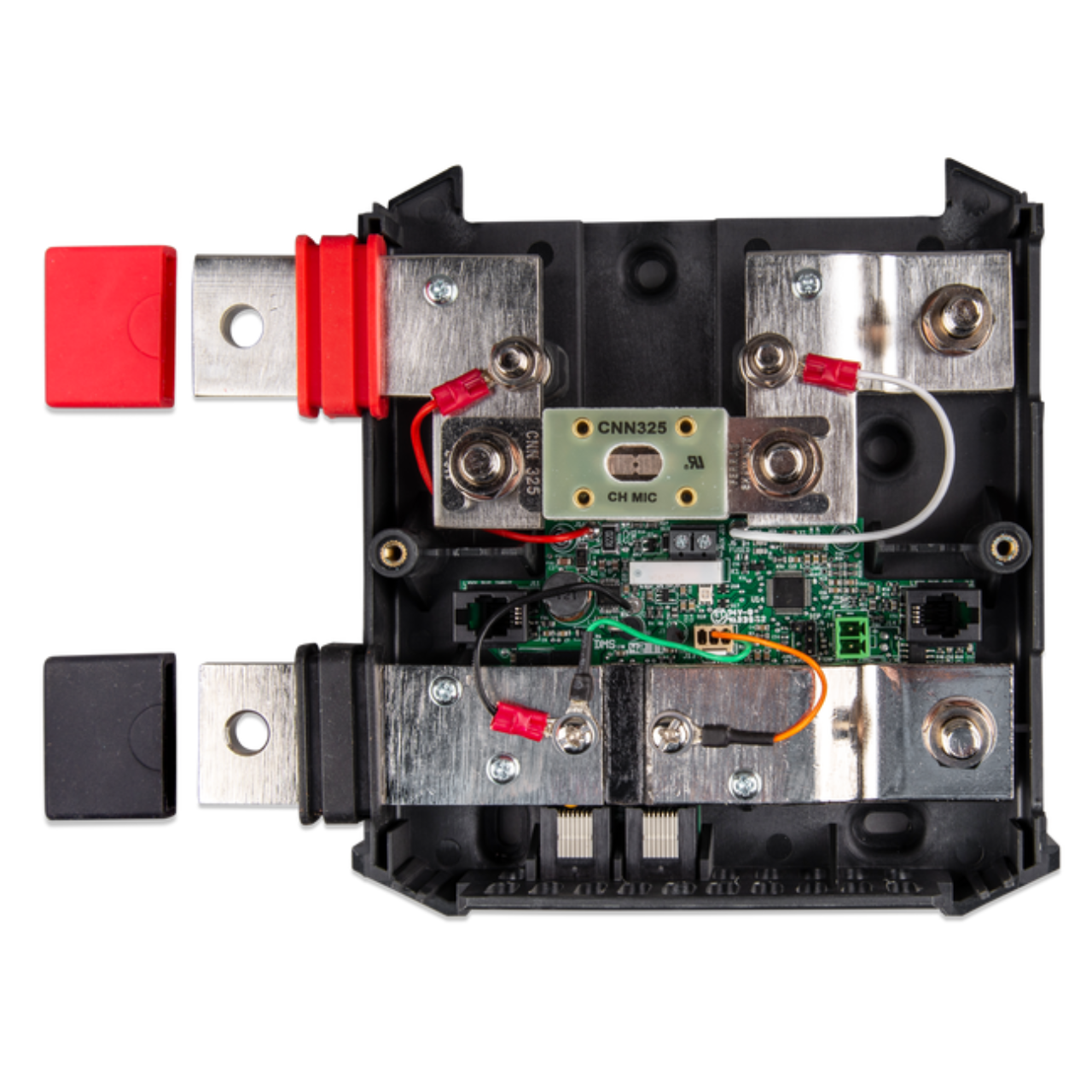 The Lynx Shunt VE.Can is an intelligent 1000A shunt with location for a fuse (not included), the built-in battery monitor accurately monitors the state of charge of your battery. Use a GX device (e.g. Cerbo GX) for reading out the information. Part of the modular Lynx distribution system.