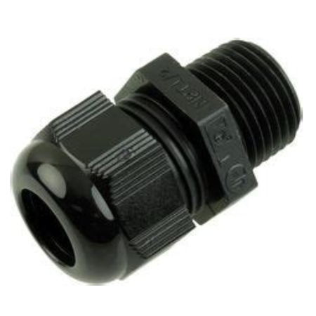 1/2" NPT strain relief fitting for 1/2" knockouts to pass wire into combiner, disconnect, or breaker boxes. One fitting accommodates two standard 10 gauge wires, often a positive and negative from a single string of panels. A twist-cap compresses the internal rubber grommet for a snug weather tight fit. Some customers will take the extra step of applying a small silicon bead at the end of the installation, for a greater degree of protection in cases of extreme exposure. Each strain relief comes with locking nut.